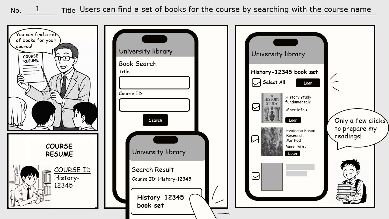 - Focus on the user’s journey—what problem does the idea address, and how does the design idea help?